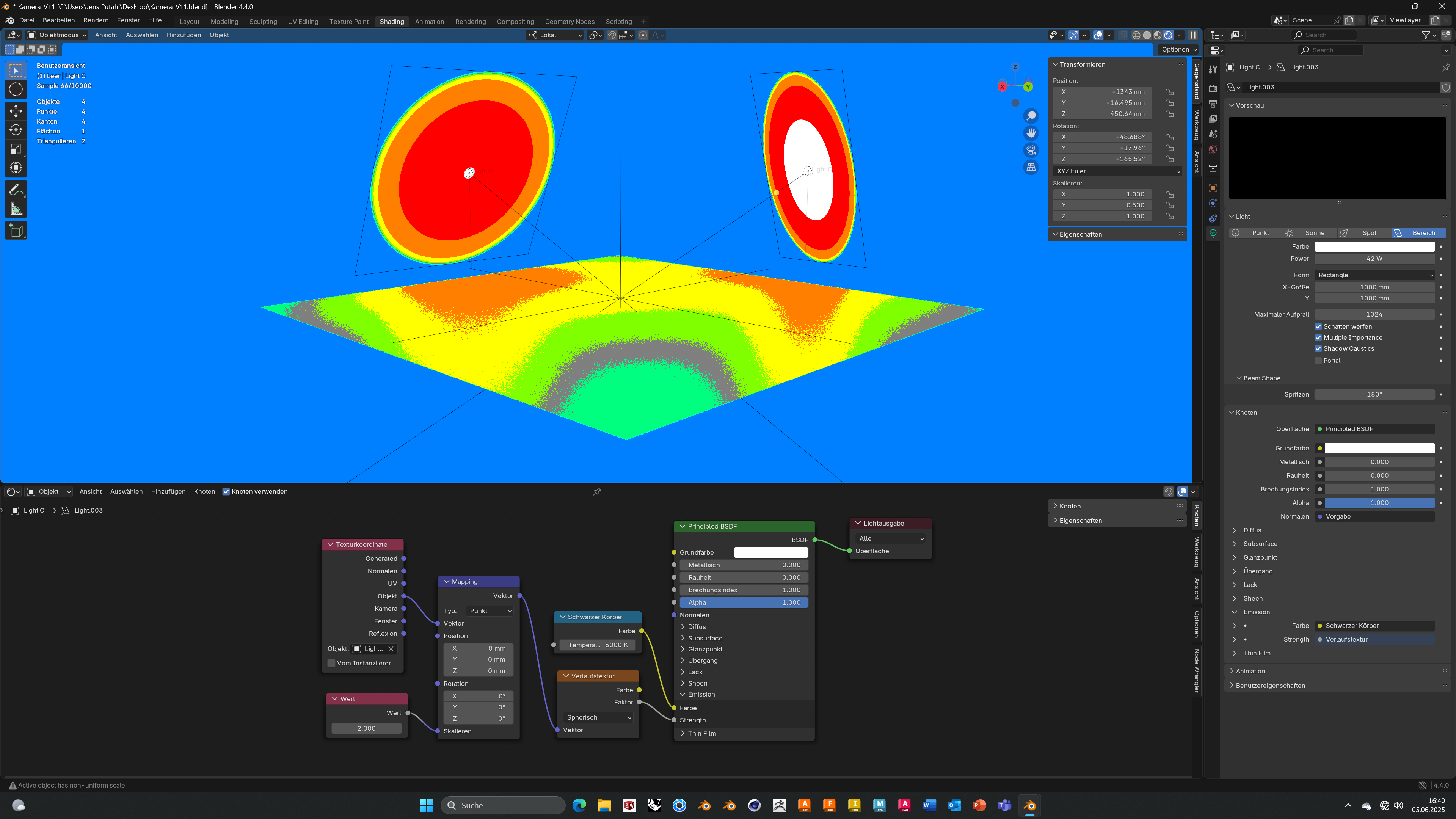 Das gleiche Licht auf der rechten Seite habe ich um die Hälfte kleiner skaliert (1m x 0.5m).